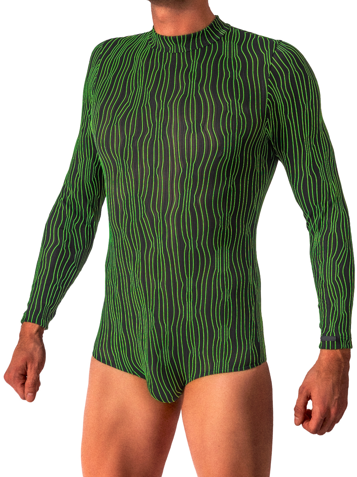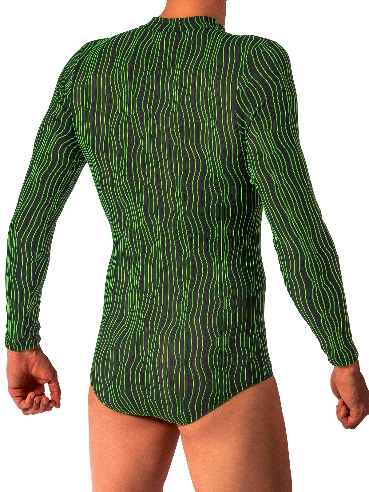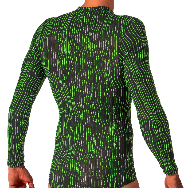 Body z lehce průhledné elastické látky. Pruhy v černém světle svítí a vytváří optické iluze. Perfektní pro krále noci.