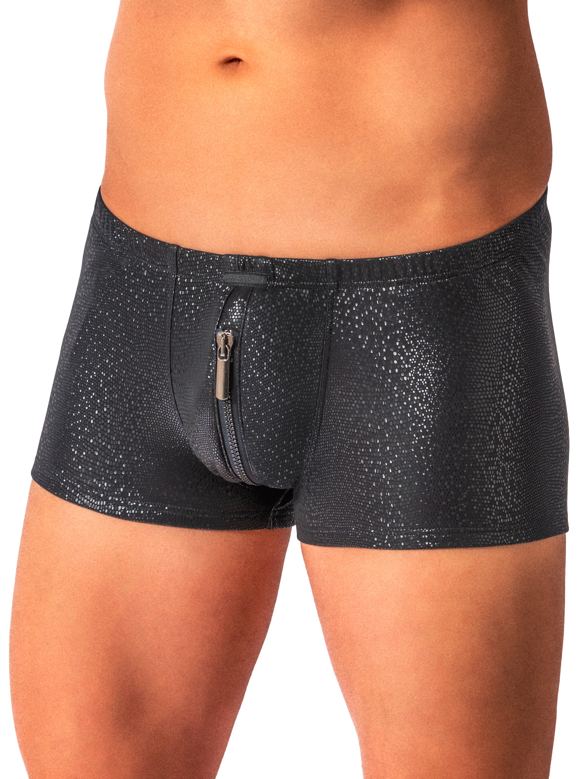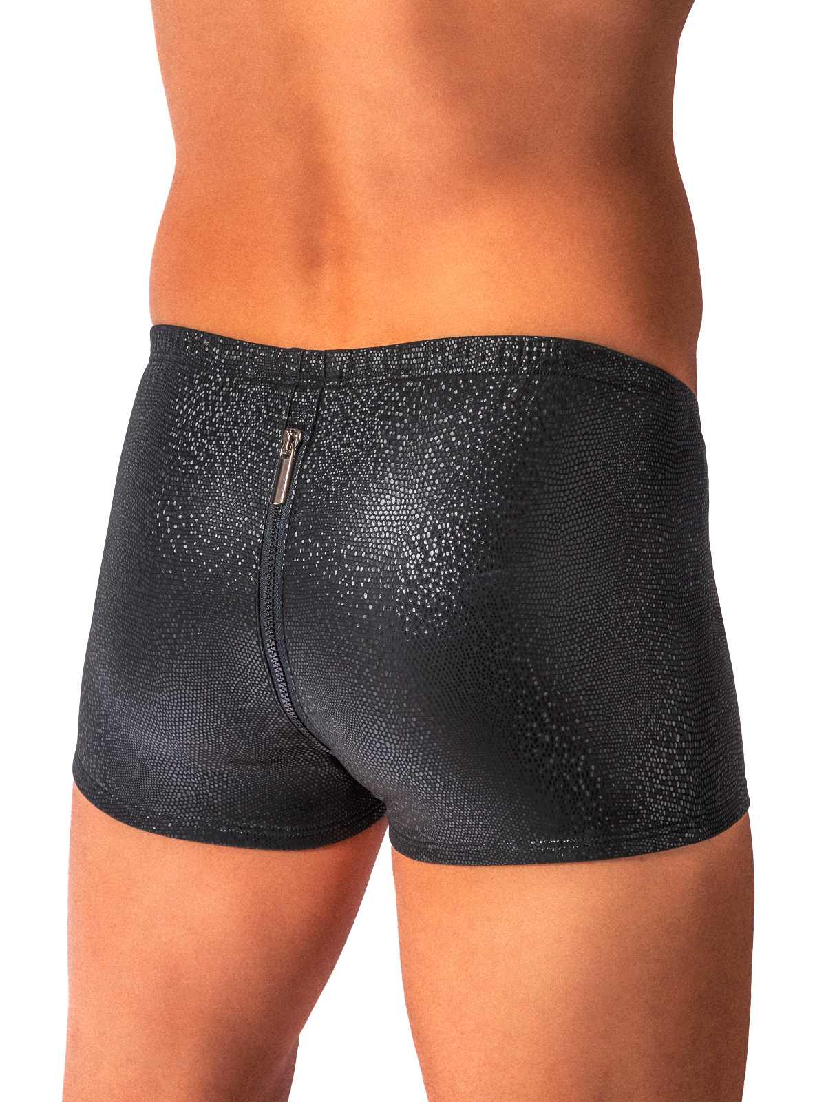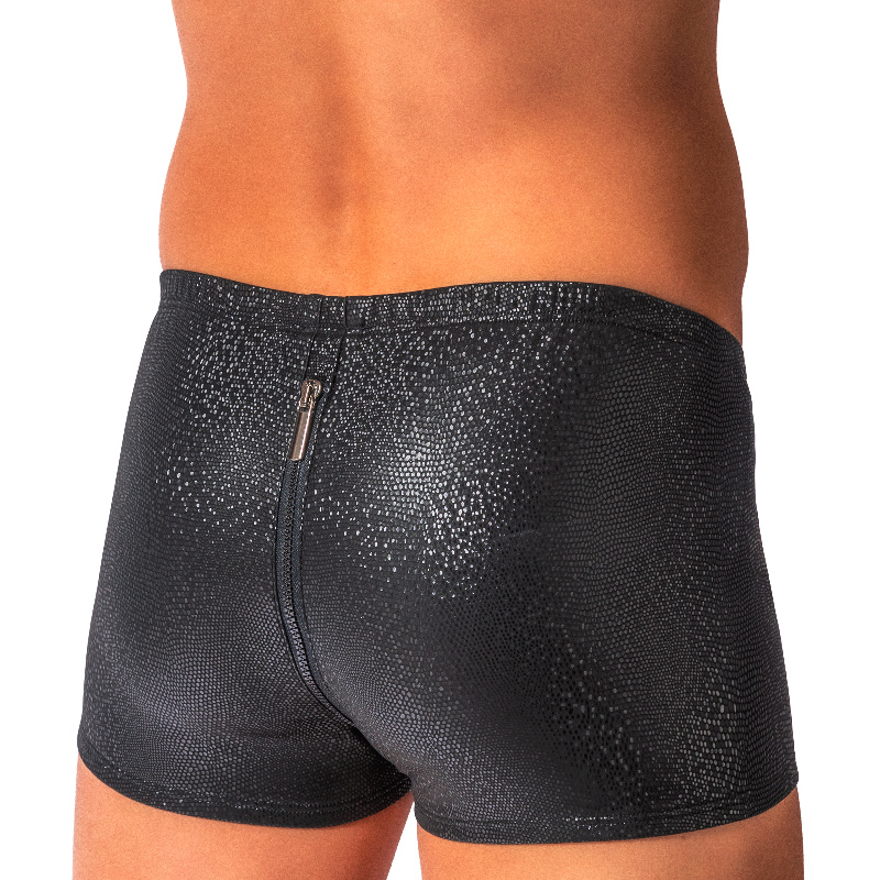 Boxerky s funkčním obousměrným zipem z teplé měkké látky s bublinkovou texturou. Vytříbený strukturovaný povrch s elegantním leskem s nádechem luxusu. Ideální pro zimní noci a párty.