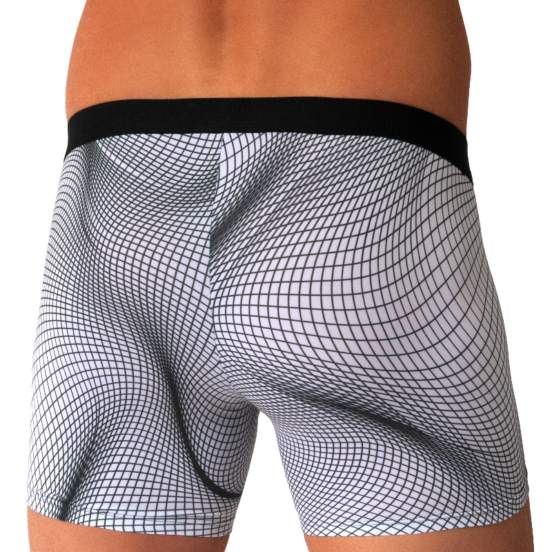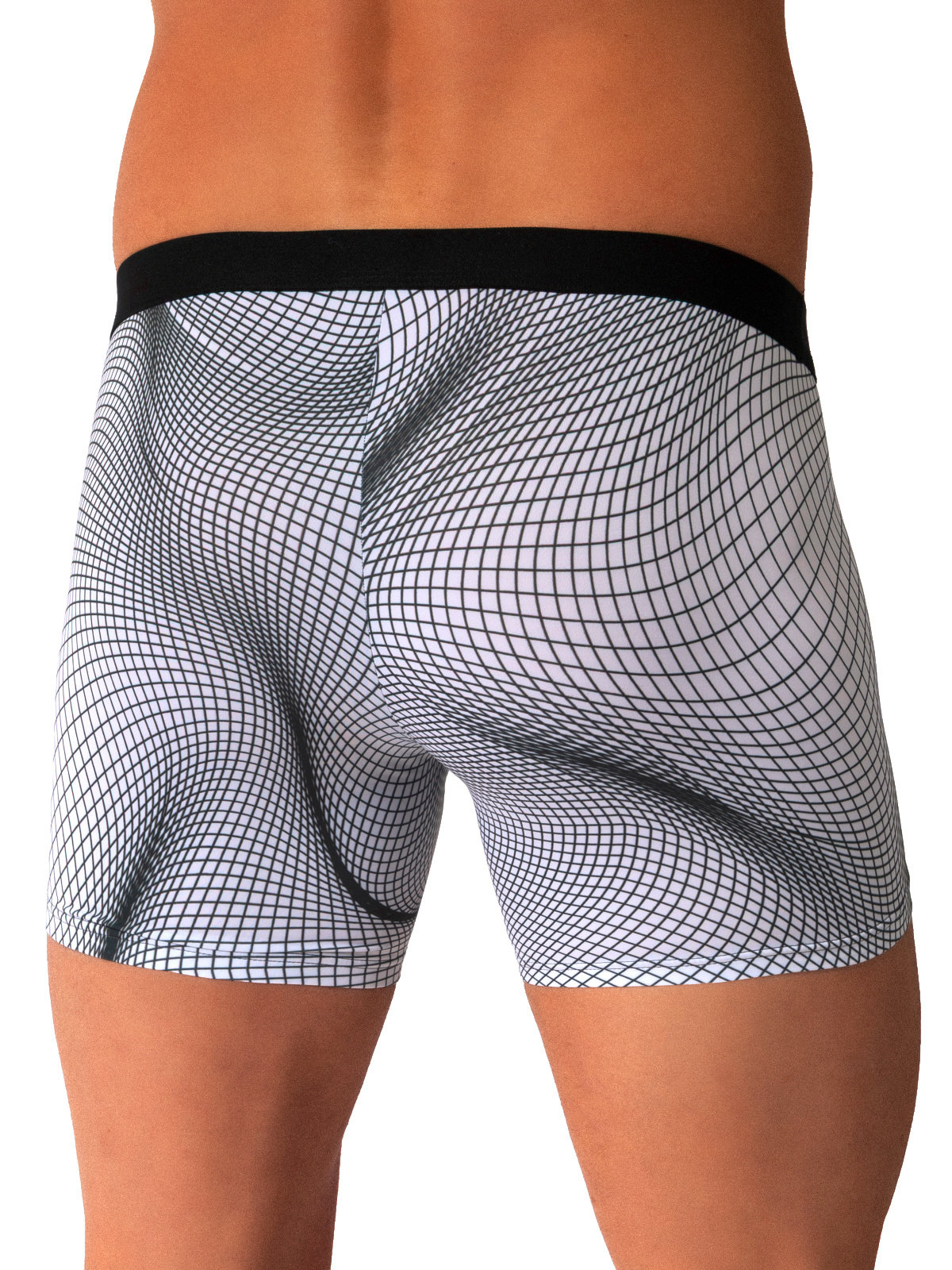 Boxerky z měkké a hladké látky s atraktivním potiskem vytvářejícím optické iluze.