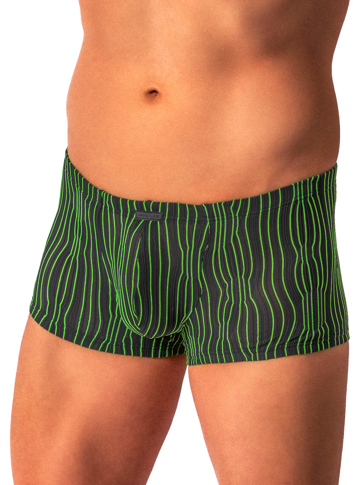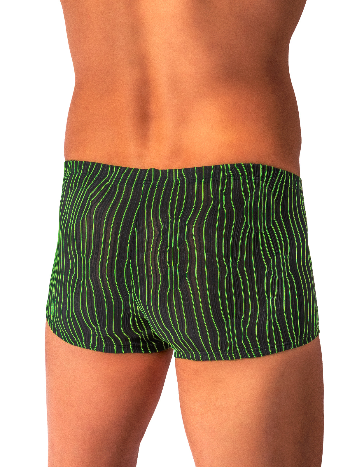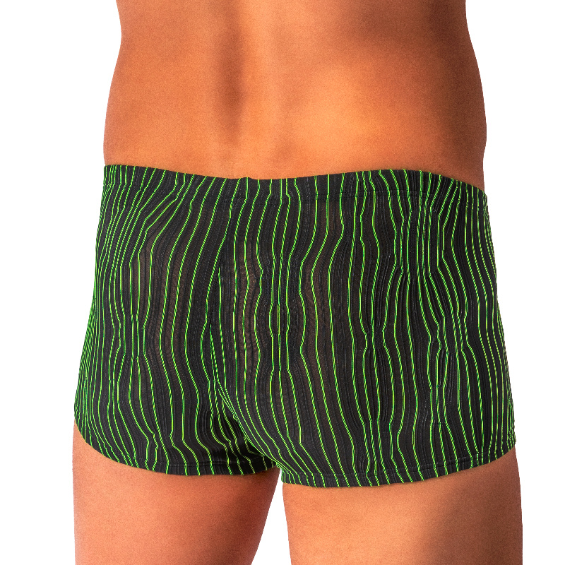 Boxerky z lehce průhledné elastické látky. Pruhy v černém světle svítí a vytváří optické iluze. Perfektní pro krále noci.