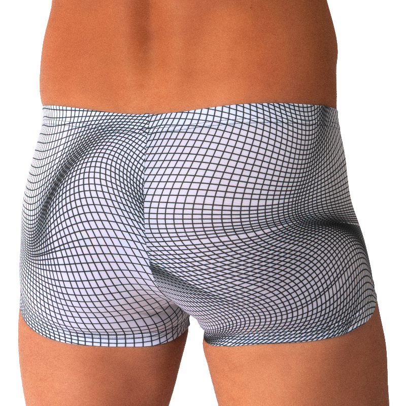 Boxerky z měkké a hladké látky s atraktivním potiskem vytvářejícím optické iluze.