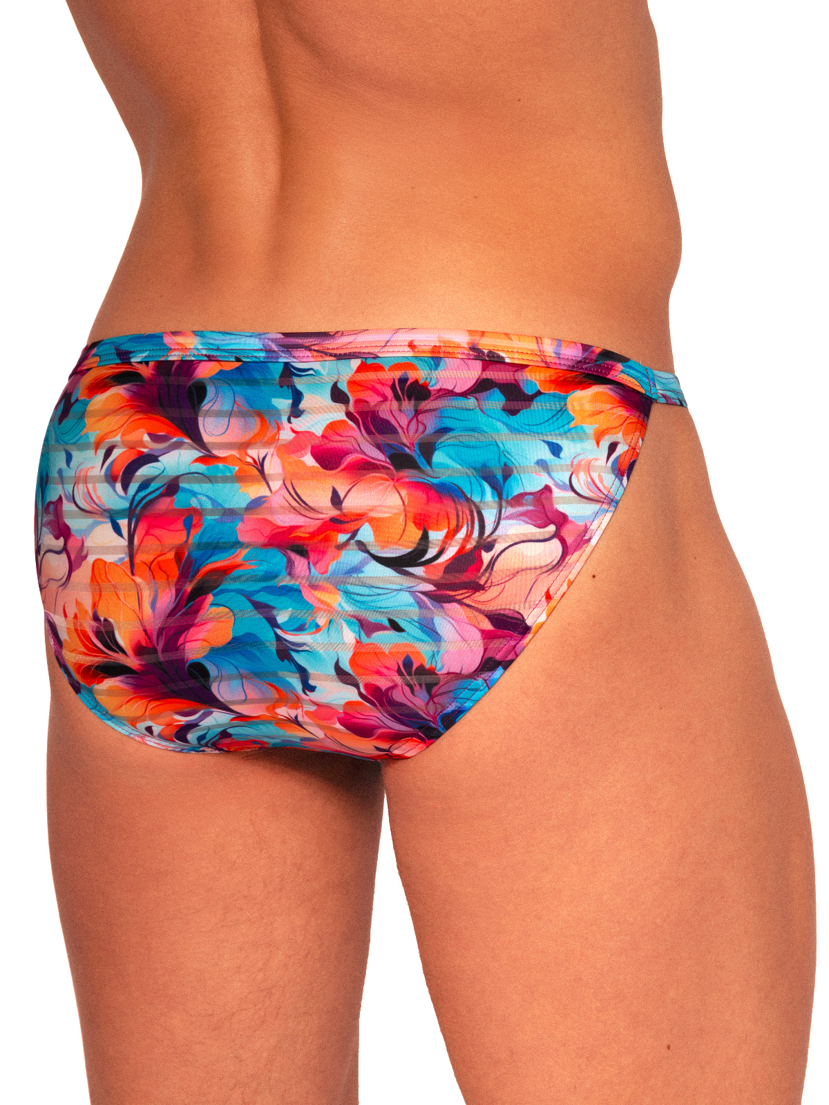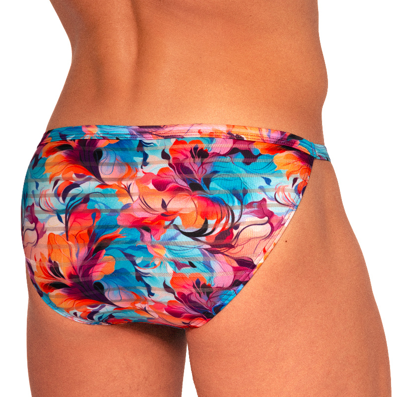 Slipy z jemné lehké látky s výrazným květinovým potiskem. Tento design je nanášen ekologickým transferovým tiskem – bezvodým procesem – který zachovává zářivé barvy a zároveň zajišťuje prodyšnost. Poloprůhledná pruhovaná textura dodává jemnou sofistikovanost. Tato řada, která je k dispozici v zářivých modrých a tónovaných zelenomodrých odstínech, nabízí všestranné možnosti stylingu. Kompletně vyrobeno v Evropě.