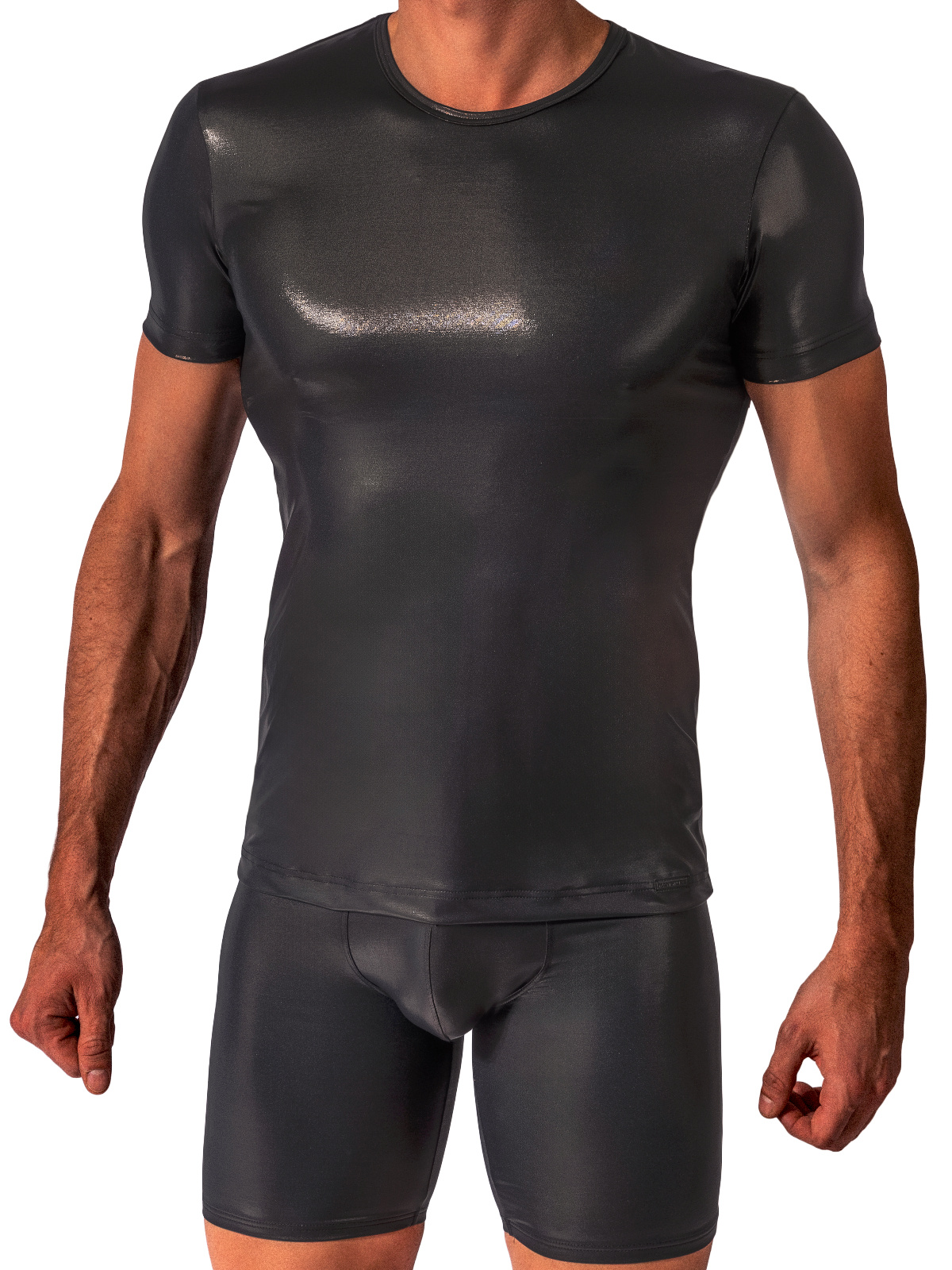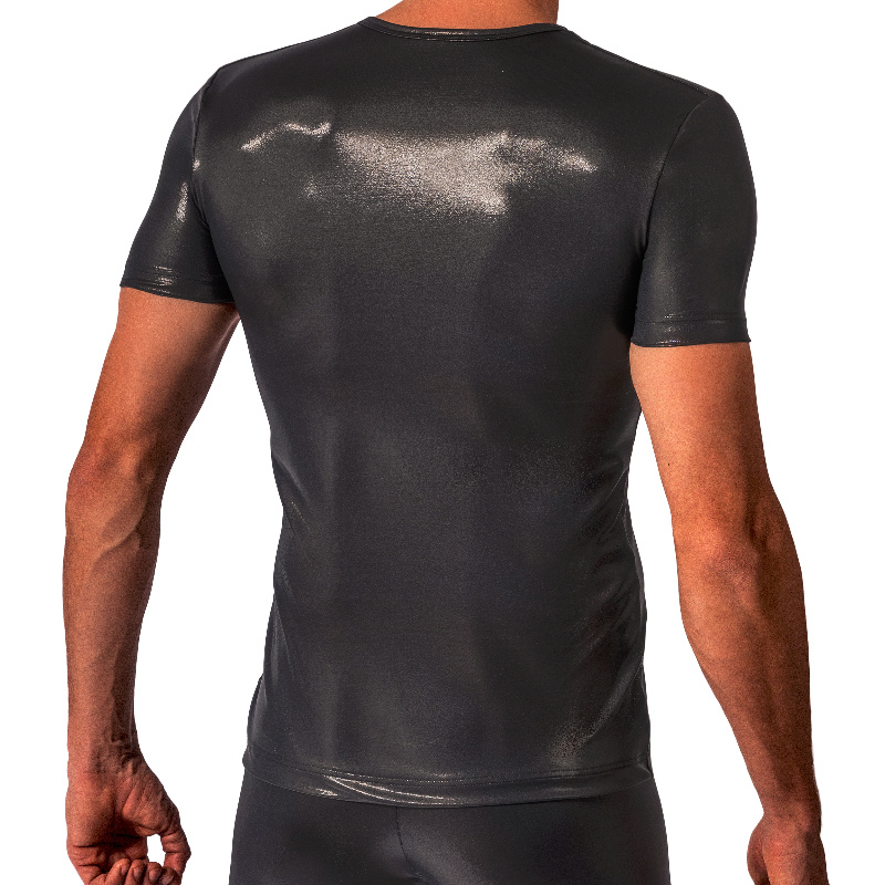 Elegantní triko s jemným leskem. Velmi tenký měkký materiál imitující kůži je flexibilní, lehký a velmi měkký. Skvělý moderní kousek na párty.