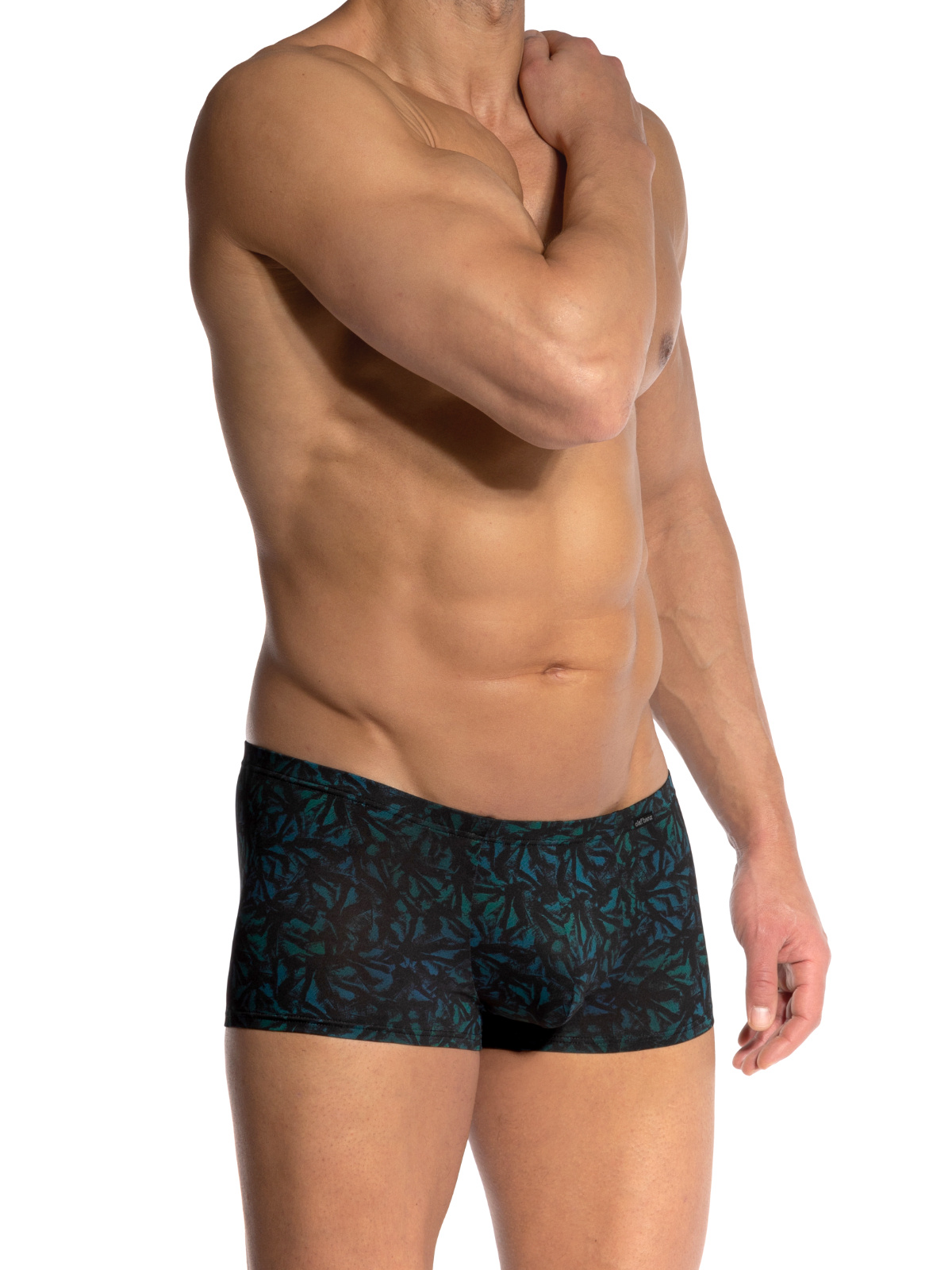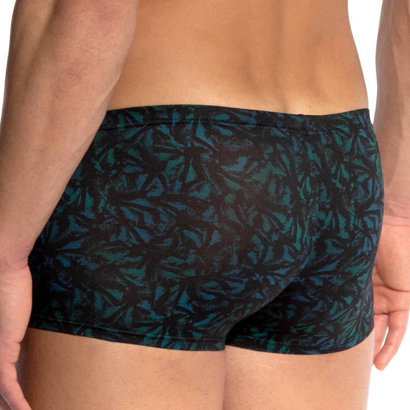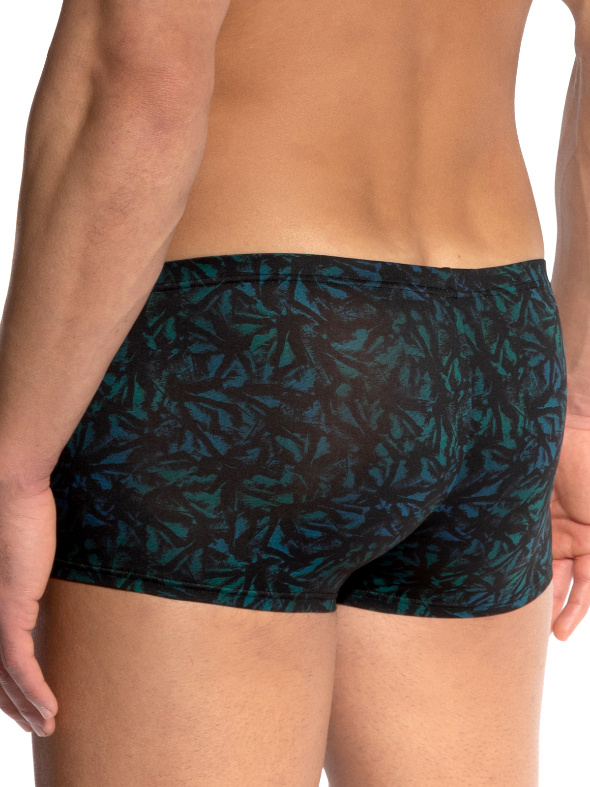 Pestrobarevné boxerky jsou definovány potiskem s abstraktní strukturou, která je pozoruhodná svou odvážnou energickou paletou. Jsou navrženy tak, aby vizuálně ladily s ostatními kousky této kolekce. Díky využití techniky tisku, která šetří vodou, si prodyšná tkanina zachovává své pohodlí.